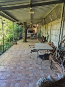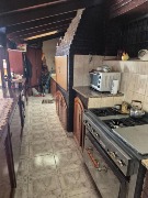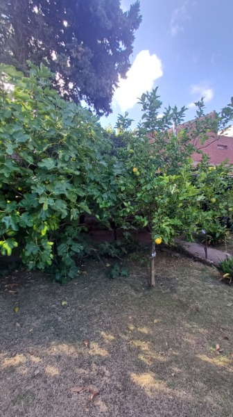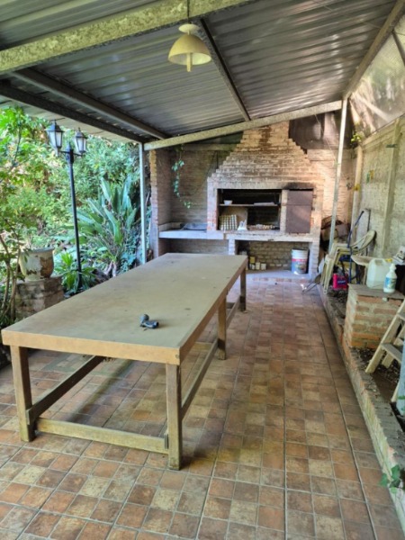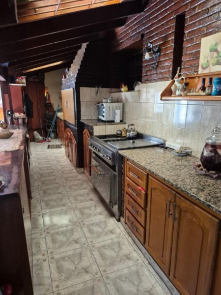 En el exterior, la vivienda dispone de jardín, quincho con parrilla y una galería semicubierta, además de cochera descubierta para dos autos.