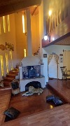 A través de una escalera revestida en madera, se accede a la planta alta, donde se ubica un dormitorio principal en suite con baño con hidromasaje, junto a dos habitaciones adicionales con dos camas cada una y un segundo baño completo.