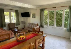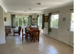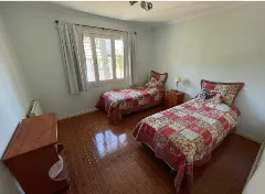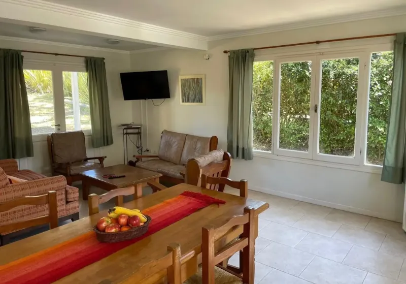 A través de una escalera revestida en madera, se accede a la planta alta, donde se ubica un dormitorio principal en suite con baño con hidromasaje, junto a dos habitaciones adicionales con dos camas cada una y un segundo baño completo.